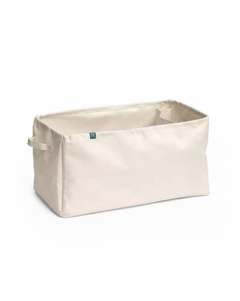 Duży płócienny kosz do przechowywania i organizowania Twojej kolekcji pomiędzy zabawami wykonany jest z wytrzymałego, neutralnego płótna.