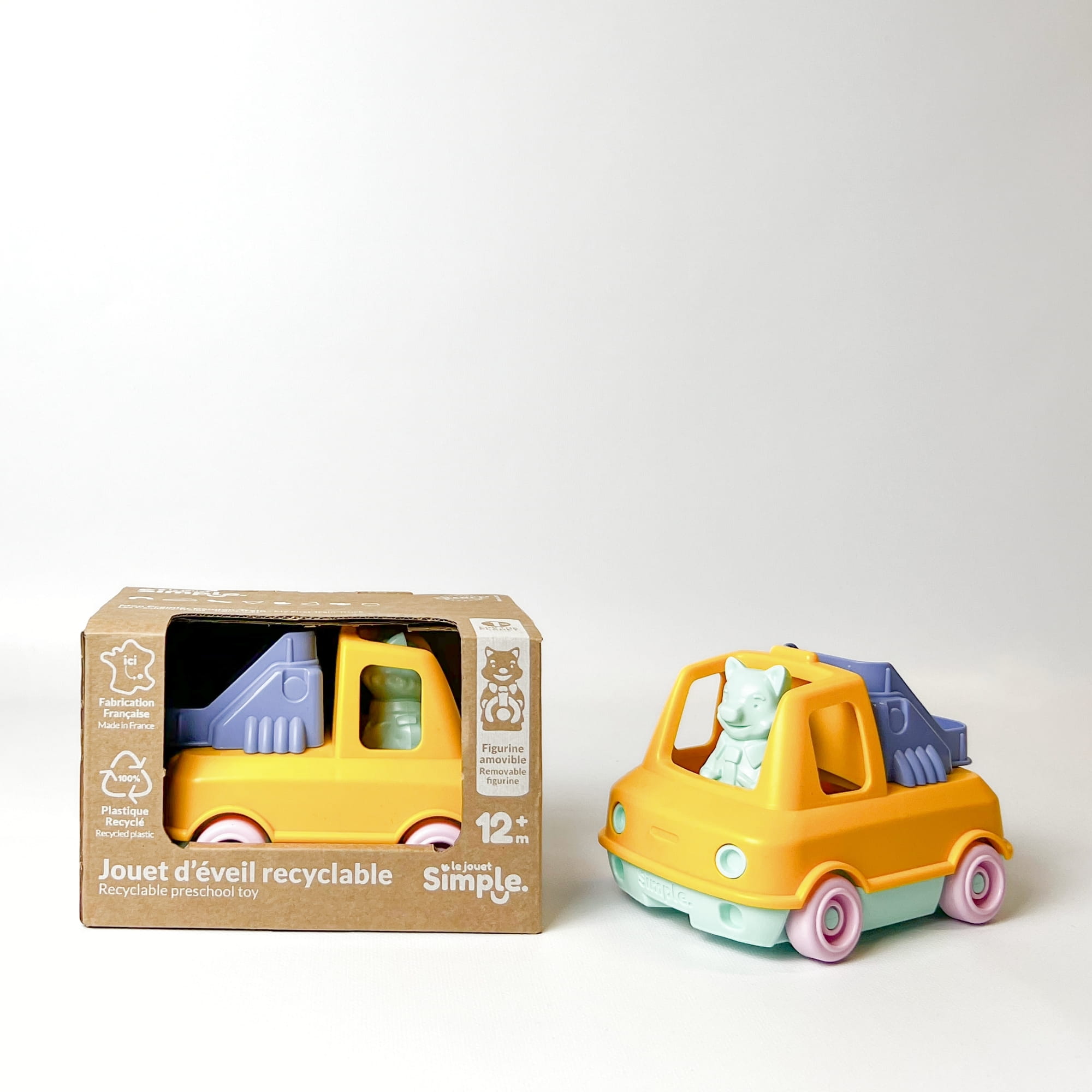 Samochód strażacki wykonany we Francji z plastiku z recyklingu. Samochód strażacki to kolorowy mały samochód, który wszędzie można ze sobą zabrać! Drabina z tyłu służy do gaszenia pożarów. Drabina przechyla się, odkrywając mały schowek wewnątrz samochodu. Zabawka do wczesnego uczenia się, która pobudza wyobraźnię dzieci. Samochód strażacki ma w zestawie figurkę liska, którego zabiera wszędzie. Nadaje się do zabawy zarówno wewnątrz, jak i na zewnątrz.