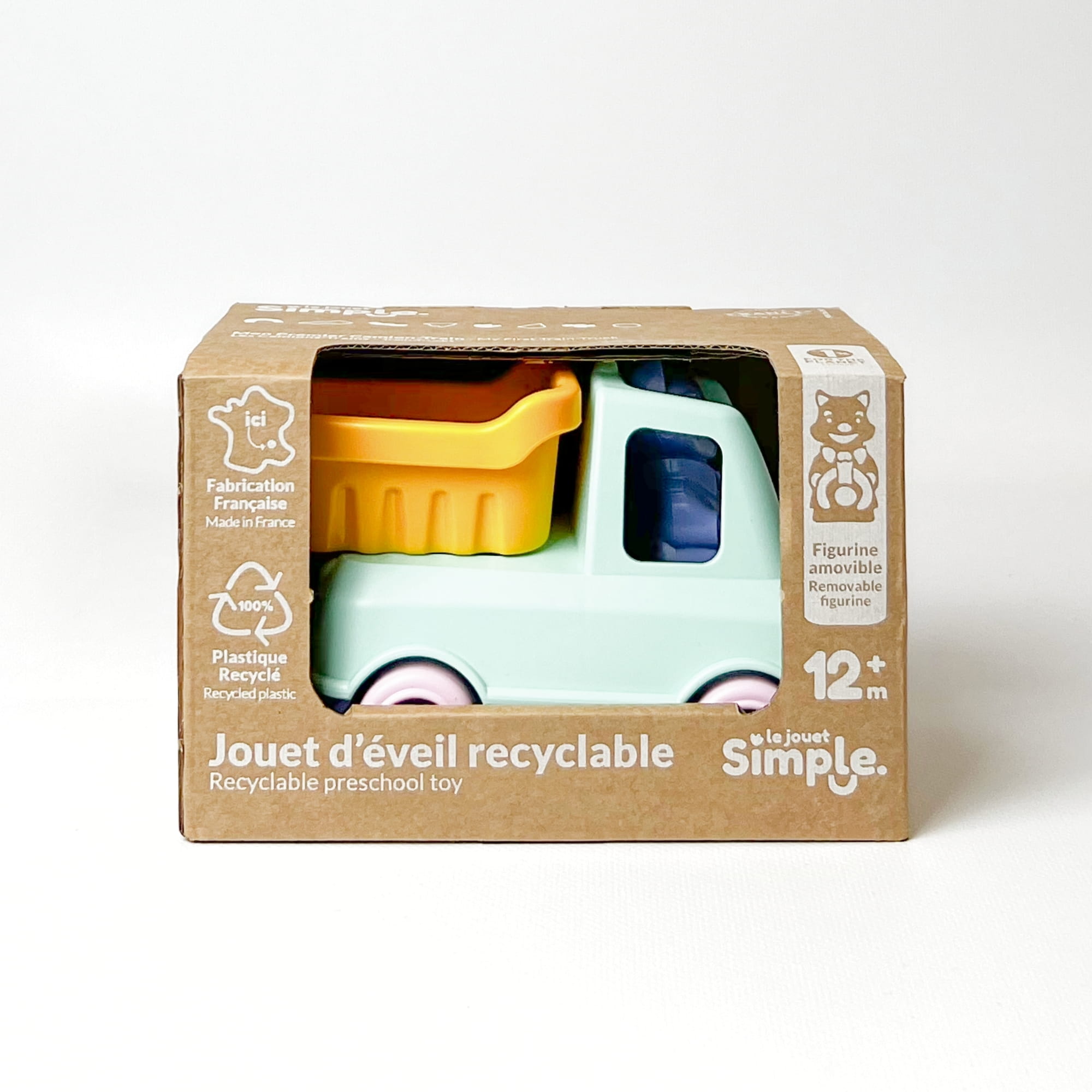Samochód wywrotka wykonany we Francji z odzyskanego plastiku. Wywrotka to ładny, wielokolorowy samochód do zabawy zarówno wewnątrz, jak i na zewnątrz. Tylna przyczepa przechyla się, ułatwiając wyładunek ładunku, i daje dostęp do małego tajnego schowka wewnątrz samochodu. Wywrotka jest ulubieńcem dzieci, pomagając im uczyć się o świecie wokół nich. W towarzystwie swojej figurki liska, mały samochód jest gotowy na przygody bez względu na pogodę. Ta zabawka jest kompatybilna z innymi pojadamii z tej samej serii. Haki pasują do siebie, tworząc pociąg. Wiek: od 12 miesięcy. Przechylana tylna część z wnęką wewnątrz Fotel kierowcy do włożenia figurki Zaczepy przednie i tylne do połączenia z innymi pojazdami 100% odzyskany plastik, możliwość mycia w zmywarce i w wodzie Projekt i kształt zaprojektowane dla rączek małych dzieci
