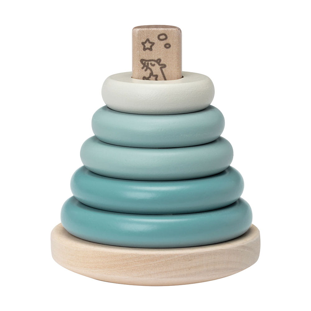 Nakładanka pastelowa drewniana zabawka piramida Micki niebieska