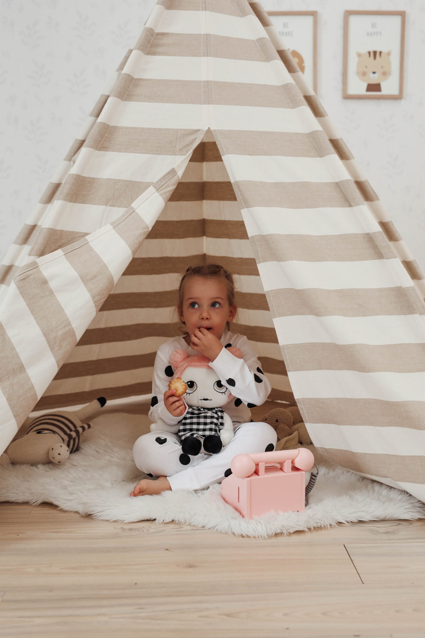 Wprowadź do pokoju dziecięcego odrobinę elegancji i zabawy z namiotowi Do Zabawy w Paski . Idealny do zabawy, czy to w domu, czy na zewnątrz, namiot ten zapewnia dzieciom nie tylko bezpieczeństwo i zabawę, ale również miejsce do samotnego odpoczynku i kreatywnego marzenia.