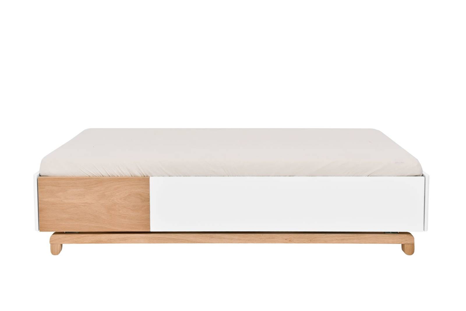 Łóżeczko jest zawsze sercem pokoju dziecięcego, to w nim dzieci odpoczywają, śnią ciekawe przygody i snują największe plany. Jednak oprócz zaspokojenia podstawowej potrzeby każdego dziecka , którą jest bezpieczny sen, skoncentrowaliśmy się również na praktycznym wykorzystaniu jego funkcji w zabawie i wspomaganiu rozwoju dziecka. Dlatego łóżeczko w wersji sofki czy tapczanika znajduje się na dogodnej wysokości od podłogi, aby umożliwić małemu dziecku samodzielne wchodzenie i wychodzenie z łóżka. Z otwieraniem szuflady również poradzi sobie mniejsze i większe dziecko, a gdy założymy na tapczanik regał pochodzący z tej samej kolekcji, stworzymy przytulne gniazdko do spania oraz ciekawej zabawy wraz z miejscem na ulubionego pluszaka, książeczki, zamocowanie lampki itp.