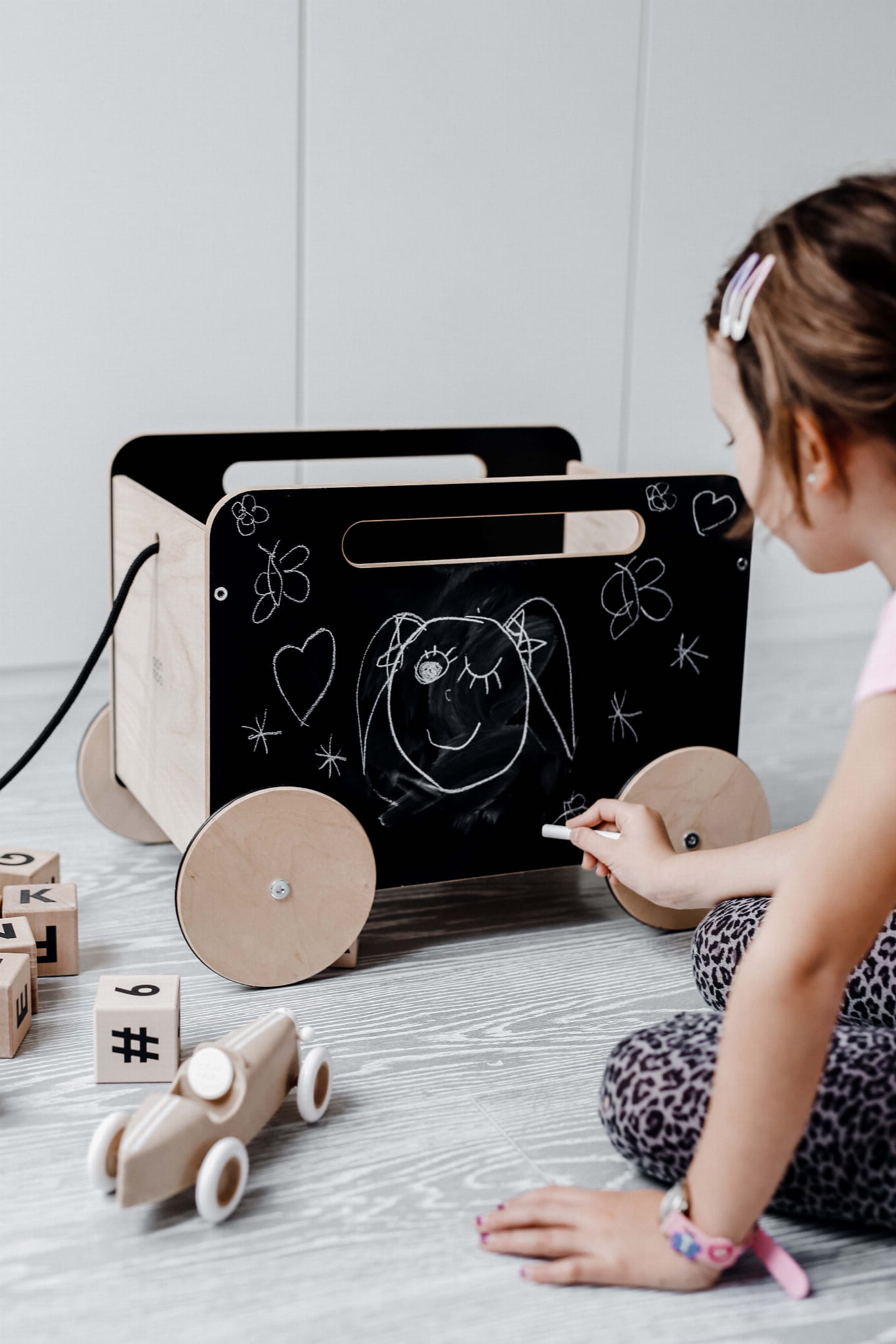 Witaj na pokładzie! Ręcznie wykonana drewniana skrzynia na zabawki ooh noo to niezwykle funkcjonalny i stylowy dodatek do pokoju każdego malucha. Zapewnia idealne połączenie zabawy i przechowywania, oferując dzieciom radość z ciągnięcia wózka oraz praktyczne rozwiązanie do organizowania ich ulubionych zabawek.