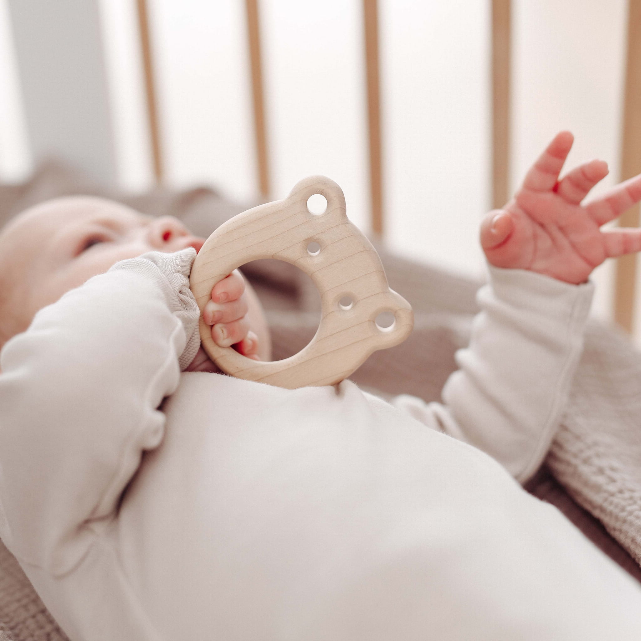 Drewniany gryzak „Żabka” – Naturalna Ulga na Ząbkowanie