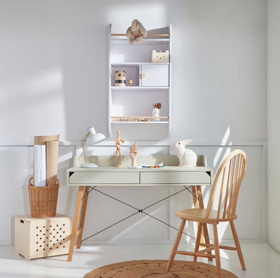 - można powiesić wysoko ścianie lub przy samej podłodze, umożliwiając dziecku swobodny dostęp do półki,
