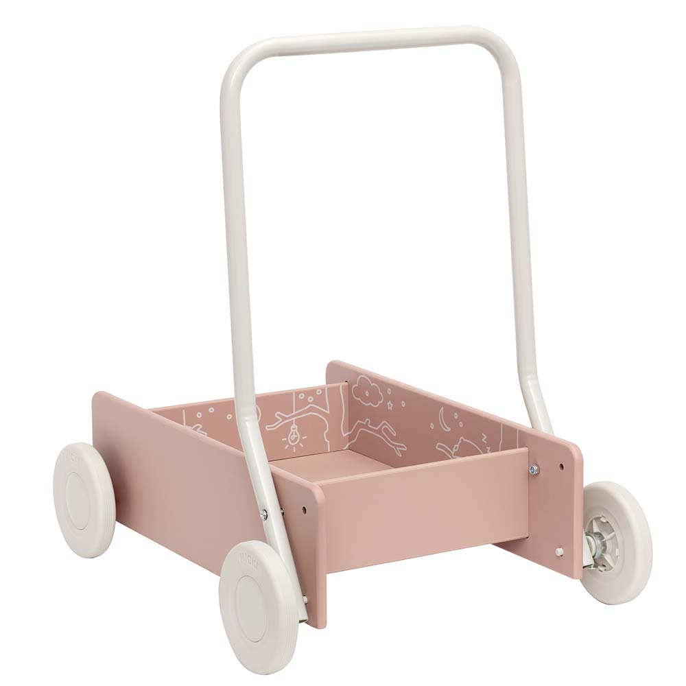 Różowy wózek na klocki chodzik pchacz drewniany Micki