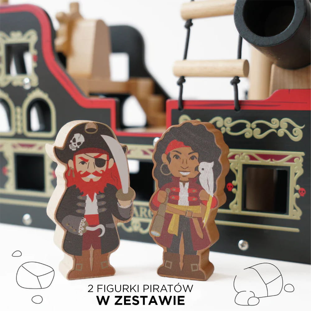 - Drewniana zabawka piracka z interaktywnymi funkcjami