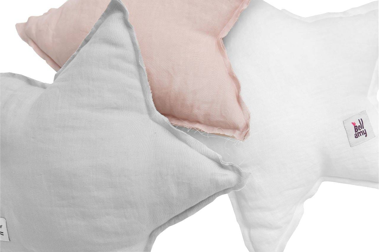Ozdobna poduszka w kształcie gwiazdki jest uzupełnieniem kolekcji lnianej. Surowe wykończenie nadaje jej delikatności i naturalności.