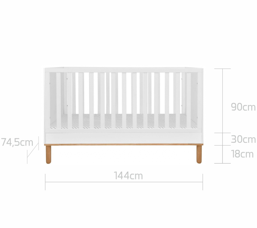 - dwa wyjmowane szczebelki, które umożliwiają swobodne wchodzenie i wychodzenie z łóżeczka,