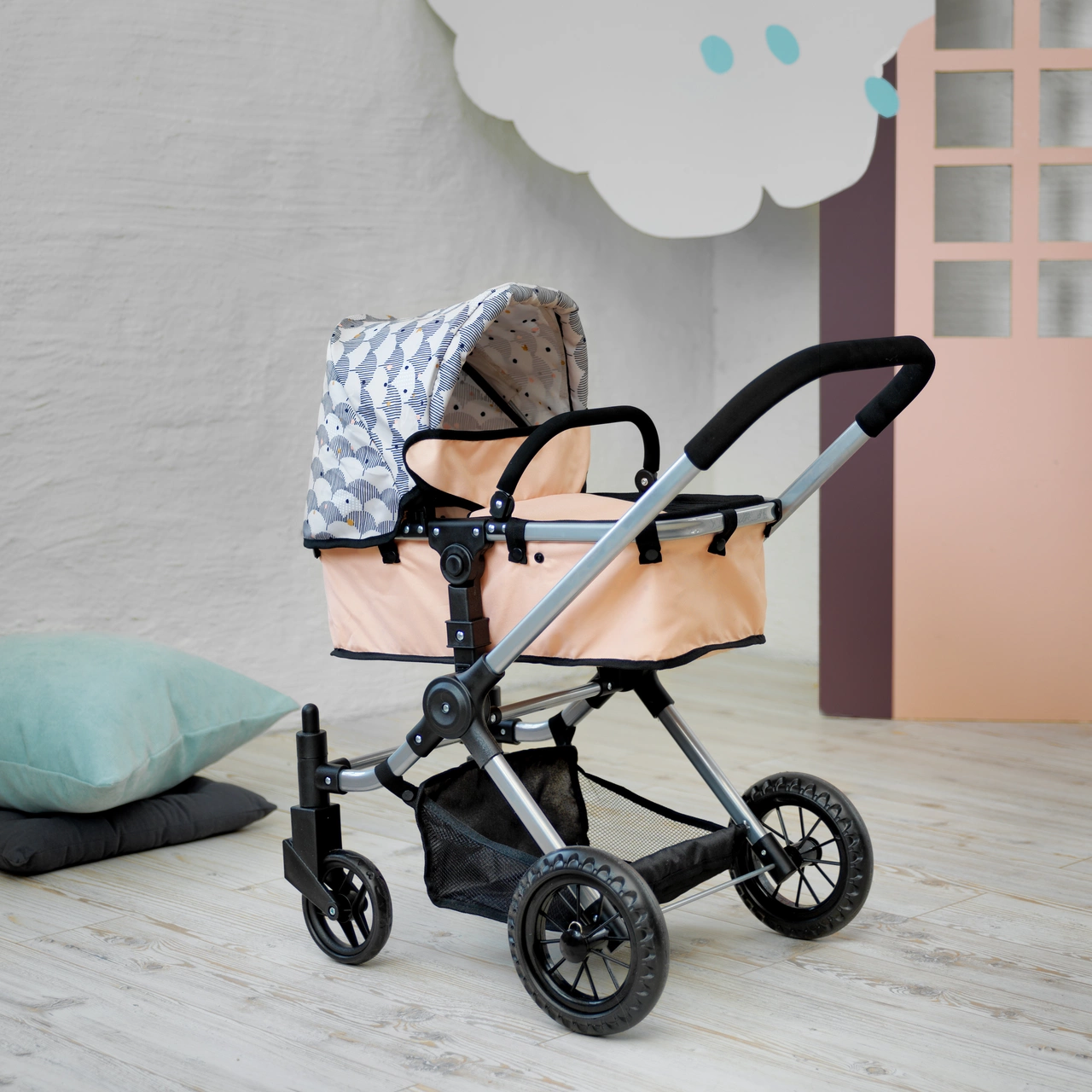 Dzięki możliwości regulacji siedzenia od pozycji leżącej do pozycji siedzącej za pomocą intuicyjnych przycisków, ten wózek dostosuje się do każdego nastroju Twojej lalki. Czy to chęć na spokojny sen, czy też ciekawość otaczającego świata - nasz wózek spełni oczekiwania.