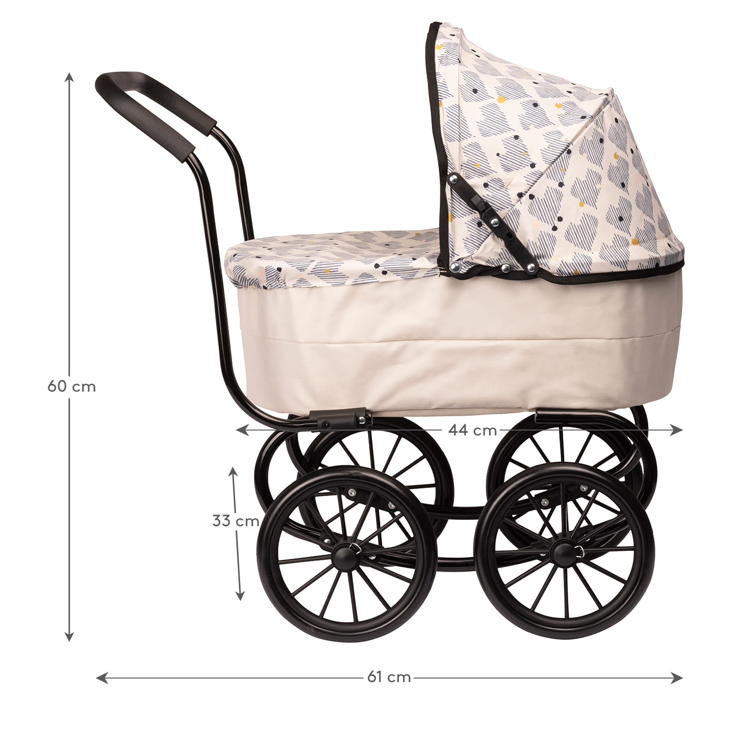 Zabierz lalkę na wycieczkę?! Ten klasyczny wózek dla lalek ma głęboką gondolę i mięciutki materacyk, dzięki czemu lalka może odpocząć podczas długich spacerów. Retro design i niepowtarzalny wzór nadają wózkowi niepowtarzalnego stylu.