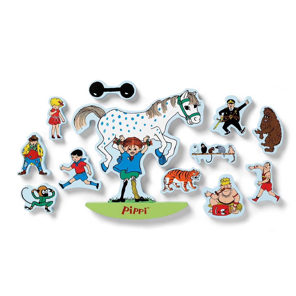 Pippi Langstrump jest najmocniejszą dziewczynką na świecie! Za pomocą tej zabawki z drewna Pippi może nosić wszystko, co napotka. Układaj je - zobacz, ile elementów można balansować, zanim przewrócą się. Zawiera 12 elementów drewnianych, które są równie fajnie do zabawy pojedynczo, jaki i balansowania. zabawka balansująca z klasycznymi ilustracjami Pippi autorstwa Ingrid Vang Nyman.