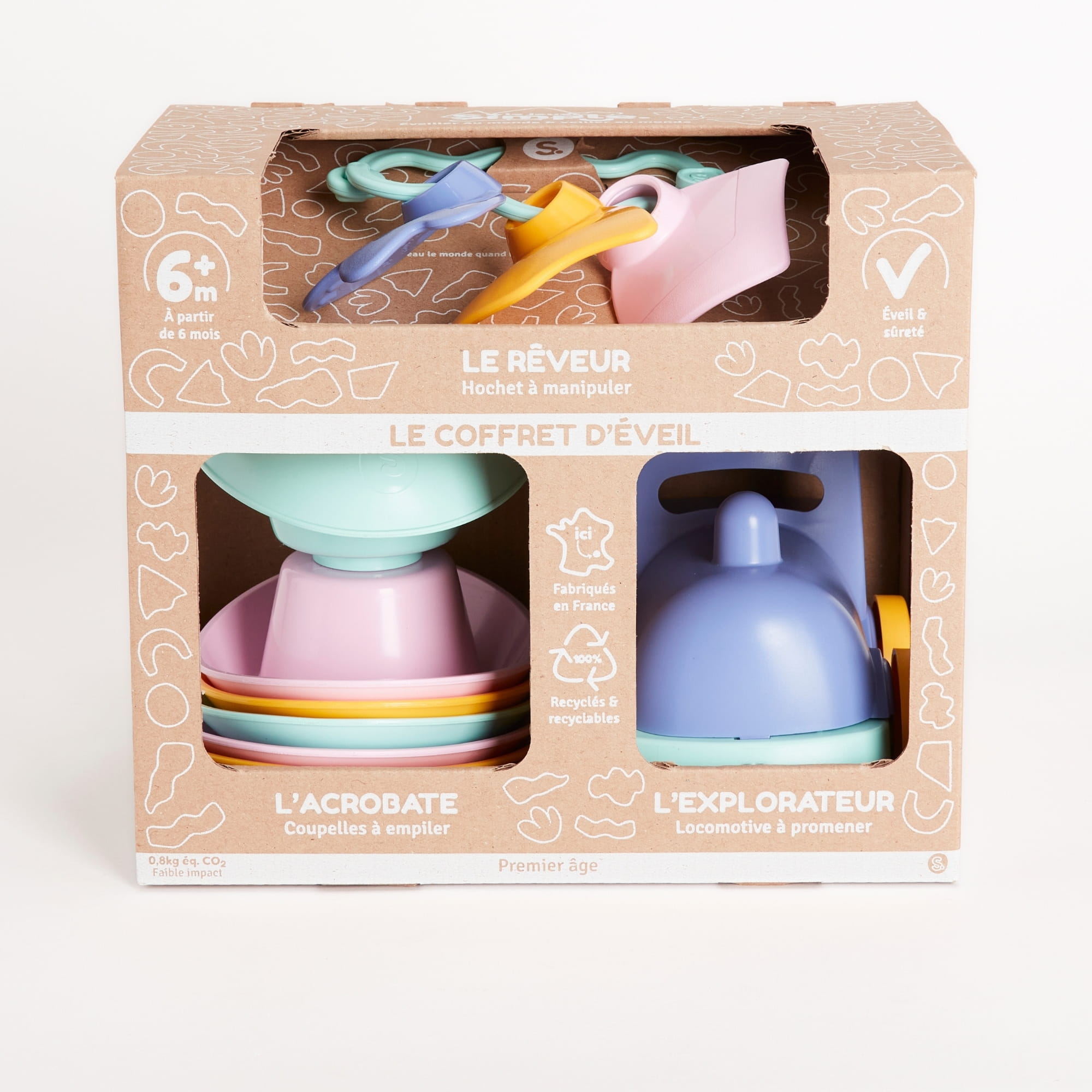 Zestaw zabawek dla małych dzieci wykonany we Francji z odzyskanego plastiku
