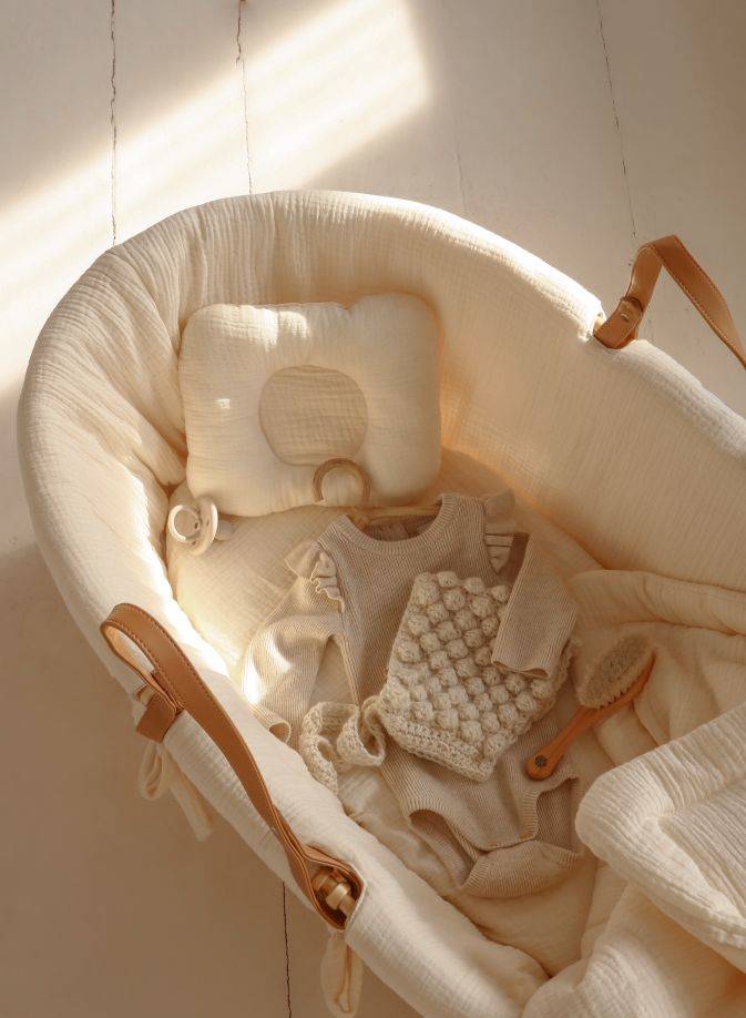 Zestaw zawiera : wyściółka, prześcieradło, kołderka oraz poduszka z wgłębieniem na główkę