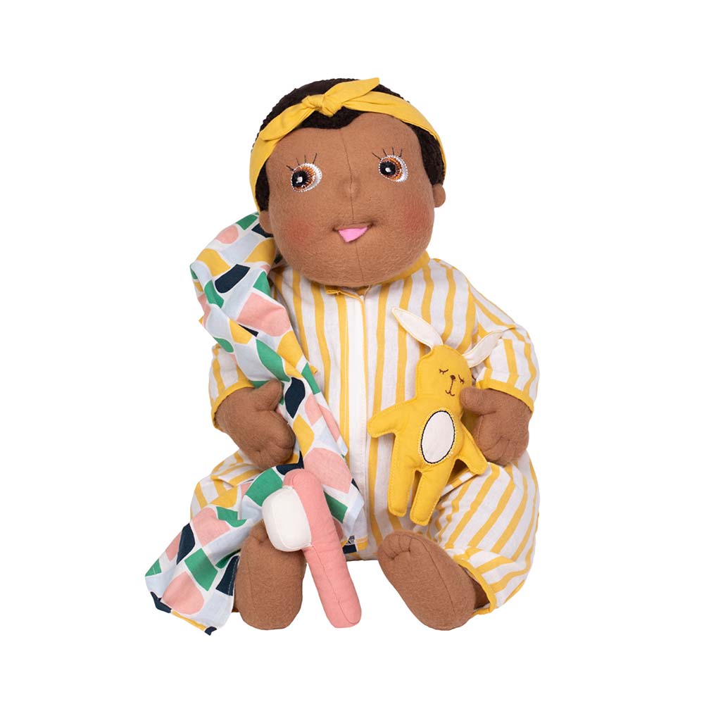 Dzieci mają także okazję doskonalić swoje umiejętności motoryczne potrzebne do ubierania się i snu, co w konsekwencji wzmacnia ich własne rutyny. Zabawa w udawanie korzystając z ubrań dla lalki Rubens Baby pomaga dziecku w przyjemny sposób uczyć się kładzenia spać.