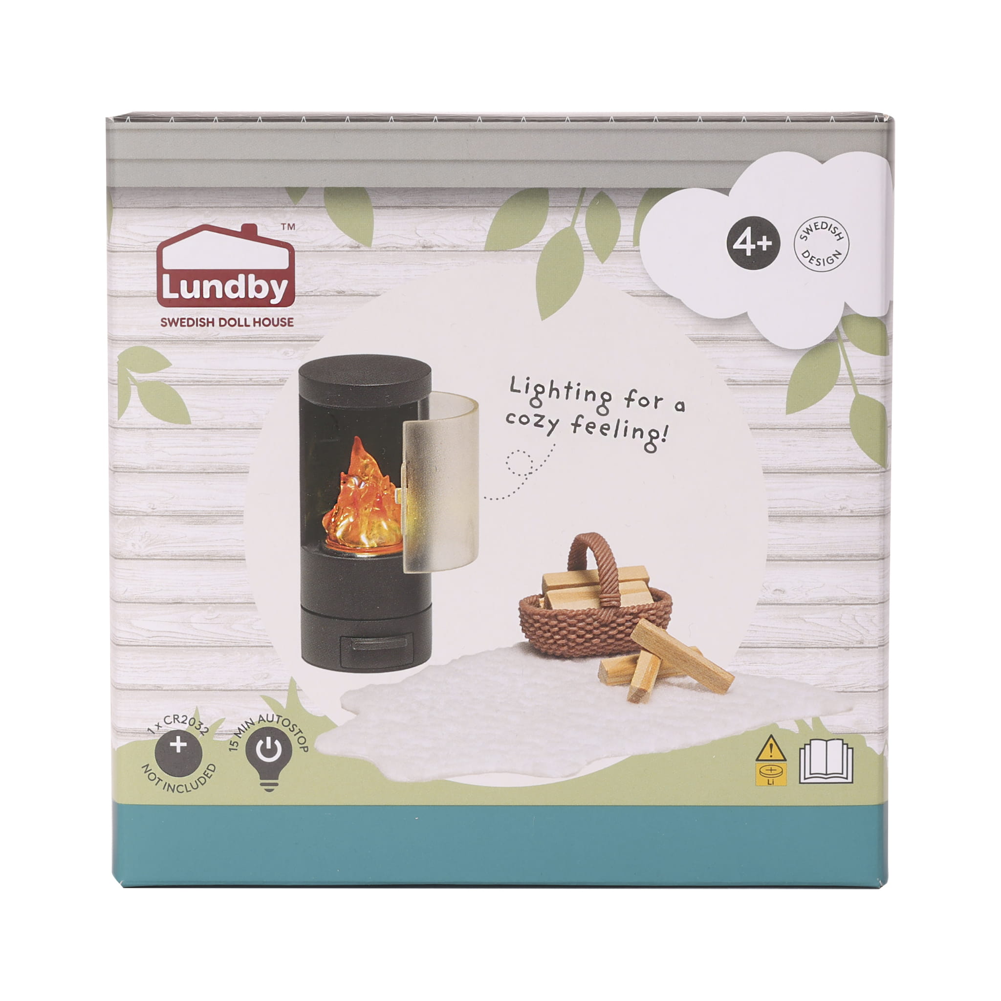 Żaden salon nie jest kompletny bez otwartego kominka, który pomoże ci utrzymać ciepło zimą. Ten zestaw Lundby zawiera nowoczesny kominek, owczą skórę i kosz z drewnem. Kominek działa na baterię 2032 i ogień można włączyć jednym przyciskiem. Posiada także wysuwaną szufladę i otwieraną klapę. Przygotuj się na wspaniałe jesienne i zimowe wieczory. Lampy włączają się jednym kliknięciem i wyłączają automatycznie po 15 minutach.